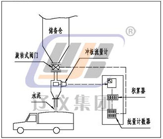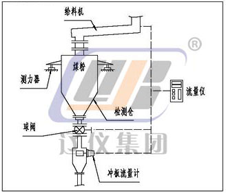 干燥的散裝固體物料自由落體沖擊到傳感檢測板(沖板)上后,傳感檢測板產生機械偏移。然后散裝物料流連續而無阻礙的通過。即:由于沖擊力與傳感檢測板具有一定角度,故該力分解成一個水平分力和一個垂直分力。垂直分力由變送器的機械結構克服而不起作用,而水平分力有一個差動傳感器(線性可調差動變送器),這個信號經與之相連的積算儀檢測和處理,得出瞬時流量和累積流量。